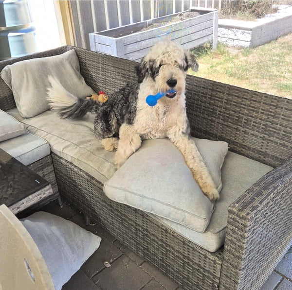 The soft squeak and flexible bounce soothe nervous dogs and reduce whining. Leave the toy during short outings to help your dog stay calm and feel comforted while you run errands.